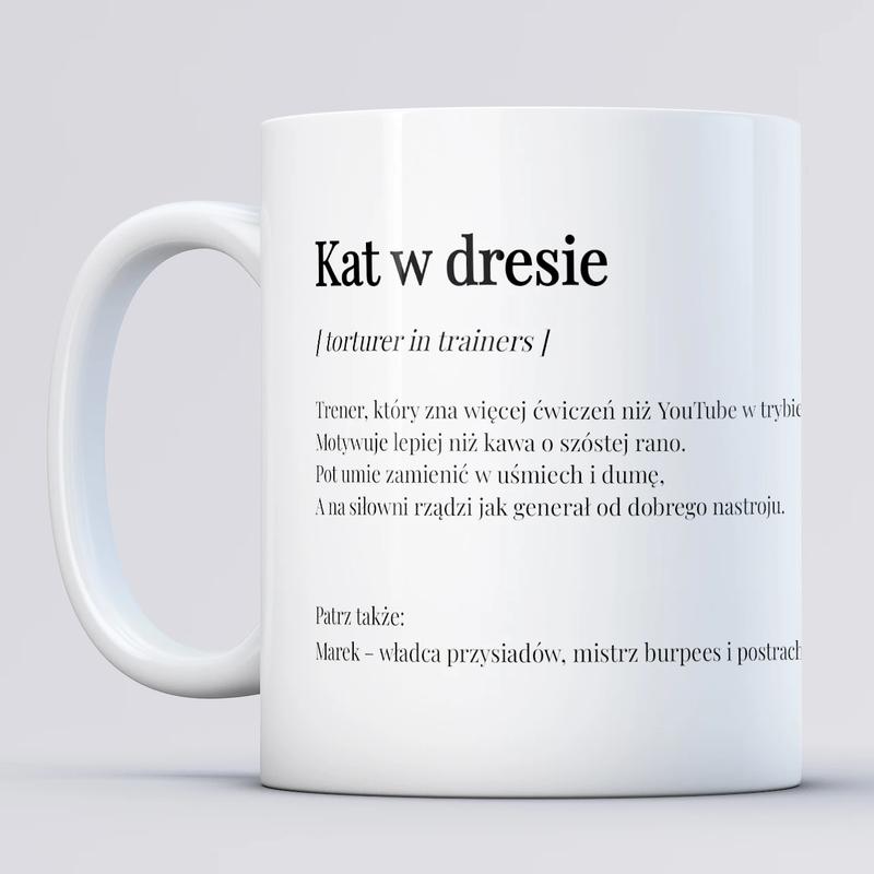 | Kubek z napisem „Trener na medal!” | Kubek, który będzie przypominał trenerowi o docenieniu w jego pracy podczas picia kawy lub herbaty. |